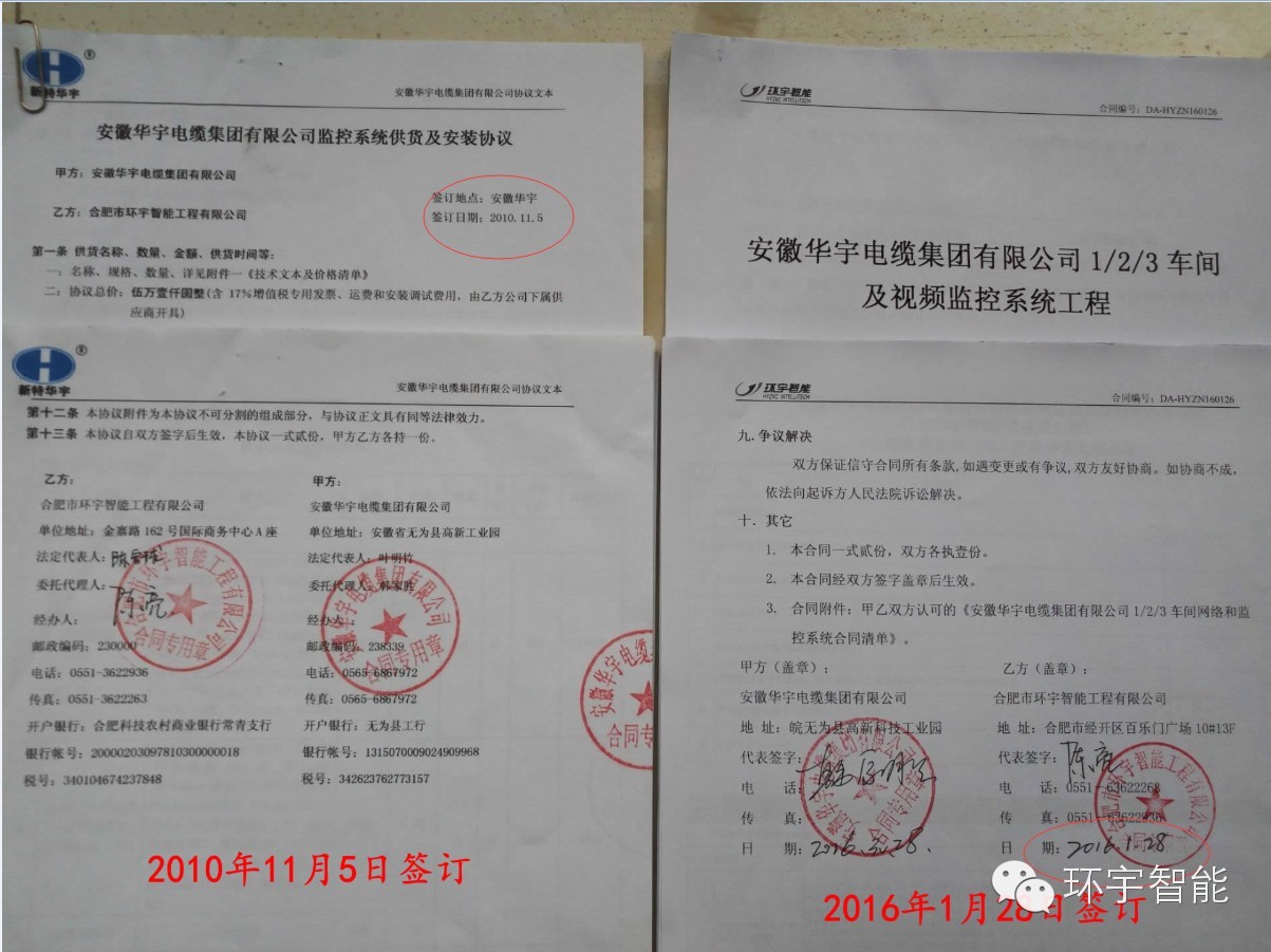 2010年11月5日安徽華宇電纜集團有限公司與環(huán)宇智能初次合作達成共識,感謝您對一個成立剛兩年的公司的信任與支持,我們用專業(yè)設計的方案與工程質量終贏得了你們的肯定。在長達六年的售后服務過程中,我們一直服務于你們,我們有幸與華宇電纜集團的共同成長與發(fā)展,感謝有你!由于貴公司的發(fā)展,原有監(jiān)控系統(tǒng)已經(jīng)無法滿足貴公司的需求,于2016年1月28日我們再次攜手合作,對原來監(jiān)控系統(tǒng)進行升級改造。